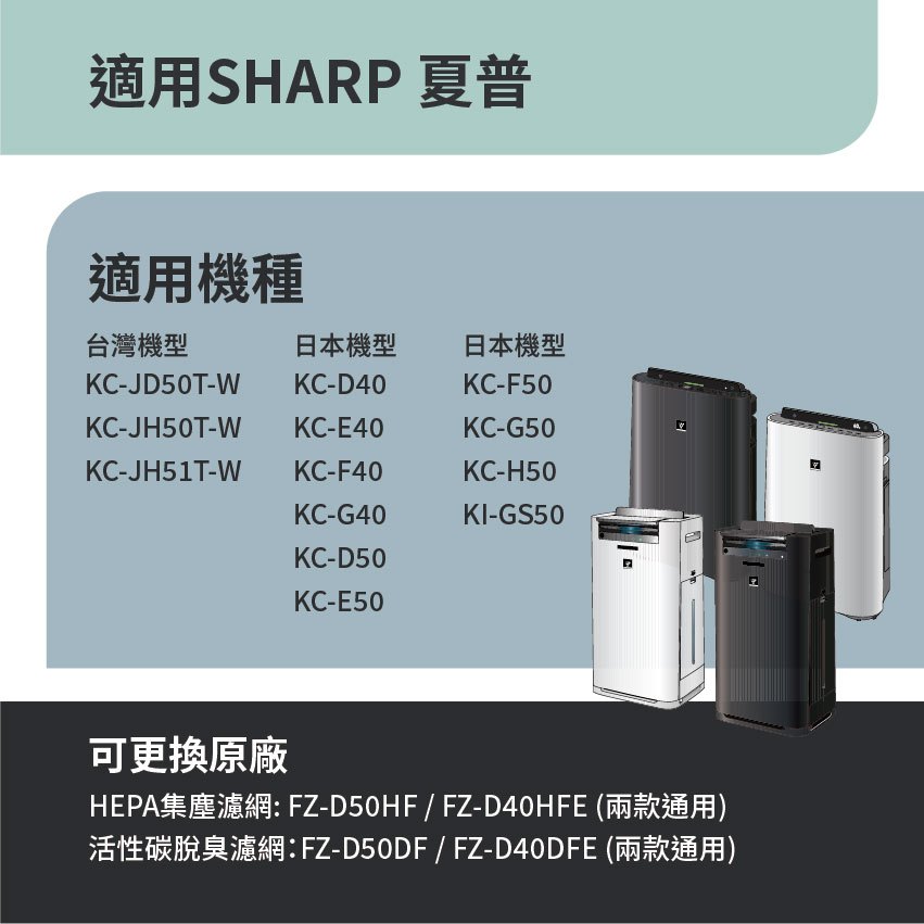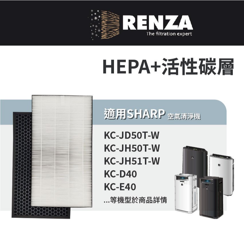 適用Sharp夏普KC-JD50T JH50T JH51T J50 H50 KI-GS50 LS50 E50 濾網 濾芯1片抗敏HEPA濾網+1片蜂巢活性碳濾網|1片蜂巢活性碳濾網(除臭除甲醛)|1片抗敏HEPA濾網Air TreatmentRenza Filtration 濾網專家