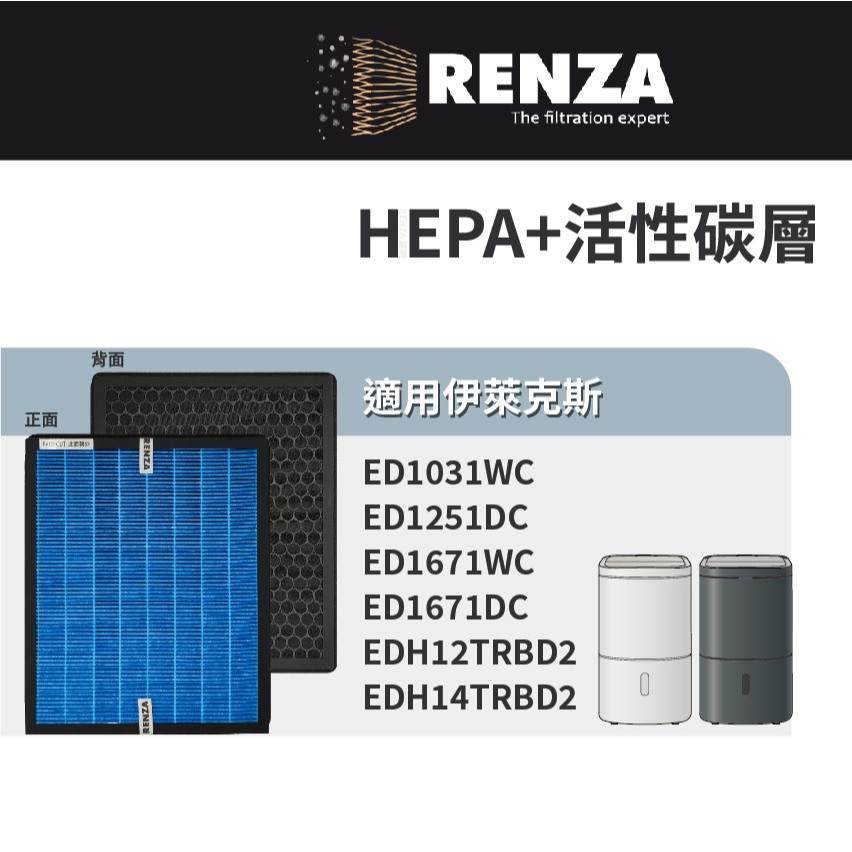適用Electrolux 伊萊克斯 極適家居500/700 ED1031WC ED1251DC 空清除濕機 濾網 濾芯HEPA活性碳濾網(2合1) x1片|HEPA濾網 x1片Air TreatmentRenza Filtration 濾網專家
