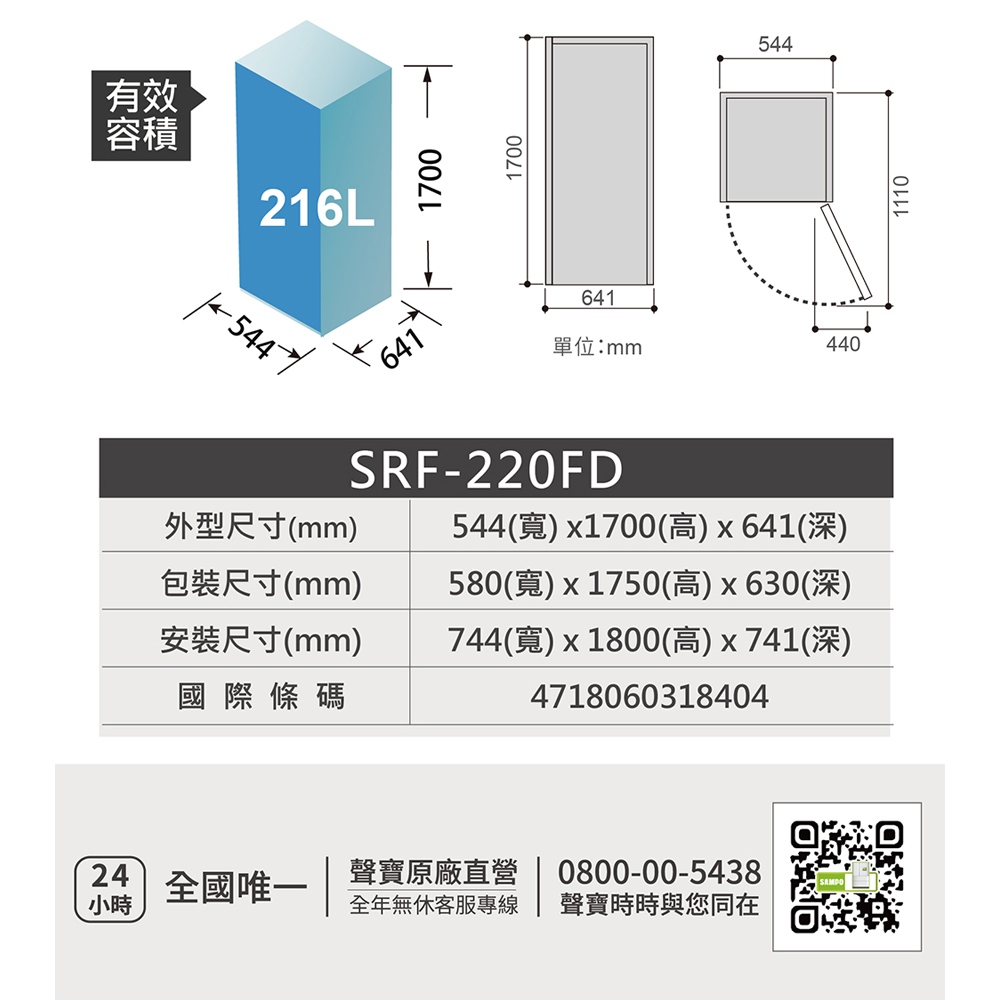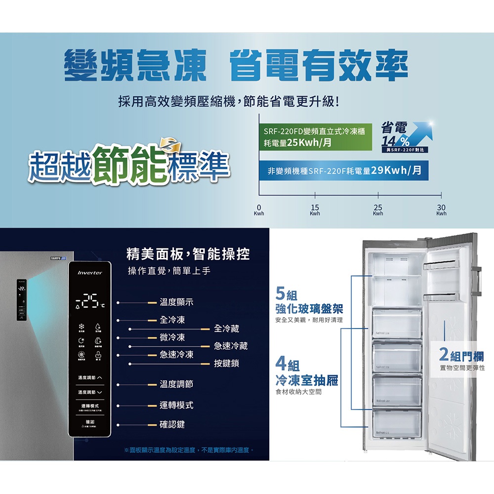 SAMPO聲寶 216L變頻無霜直立式冷凍櫃(冷凍冷藏切換) SRF-220FD-含基本安裝+舊機回收SAMPO聲寶 216L變頻無霜直立式冷凍櫃(冷凍冷藏切換) SRF-220FD-含基本安裝+舊機回收FreezersSAMPO聲寶 官方直營店