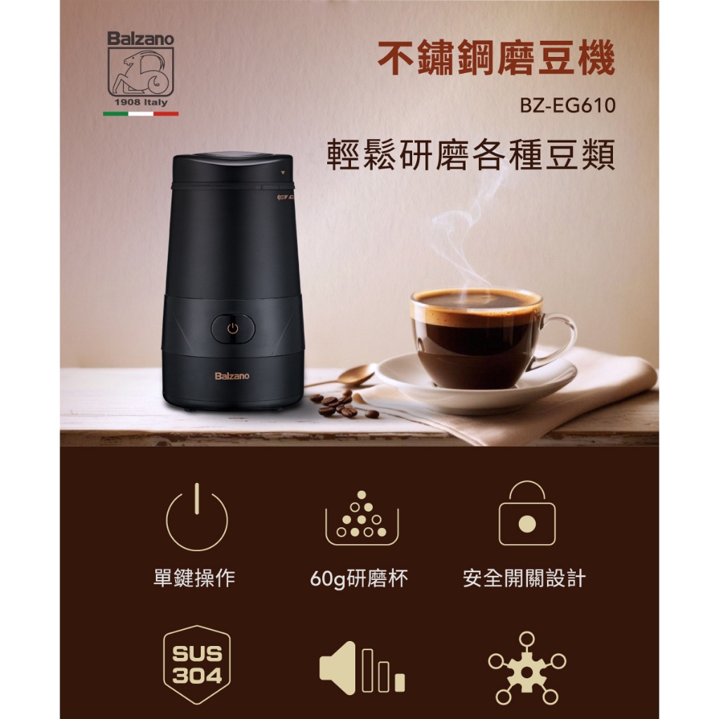 義大利Balzano 電動不鏽鋼磨豆機 BZ-EG610義大利Balzano 電動不鏽鋼磨豆機 BZ-EG610Coffee Machines & AccessoriesSAMPO聲寶 官方直營店