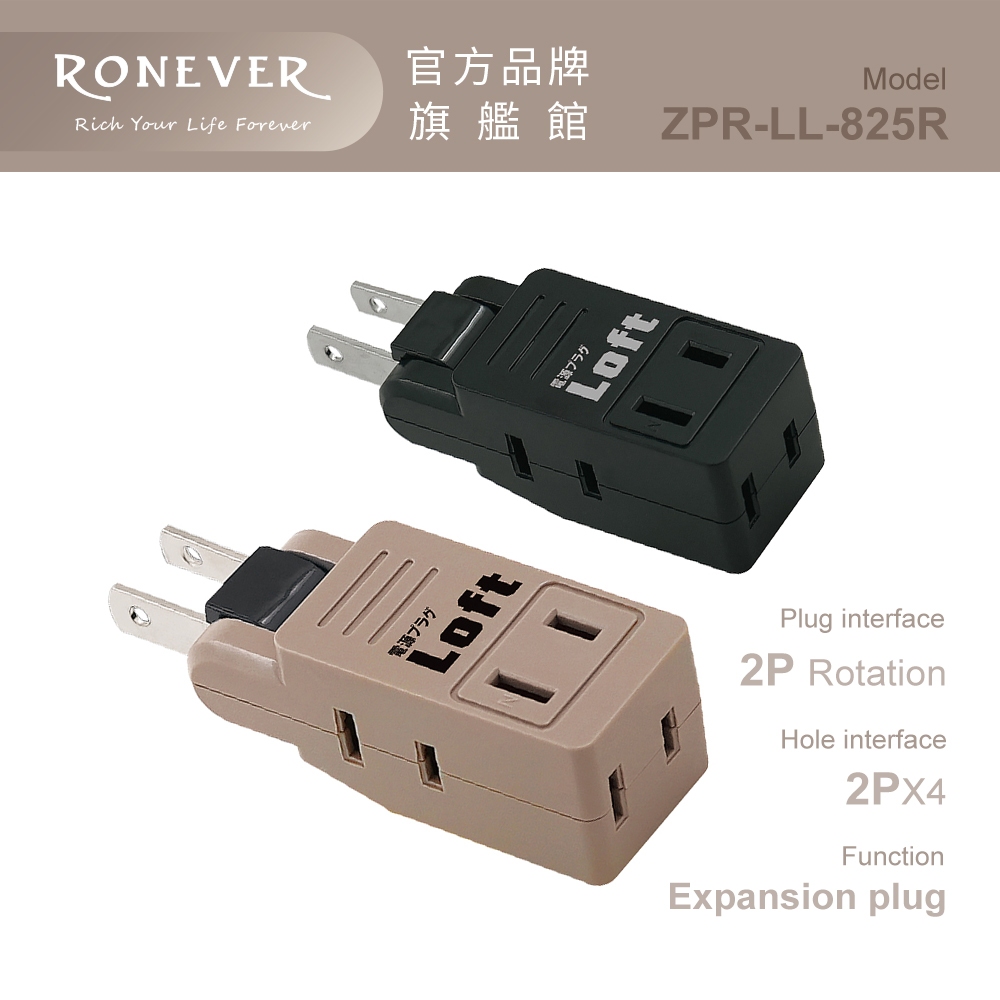 Loft Life ZPR-LL-825R / 日式轉向四面插黑色|奶茶色Electric Sockets & Extension CordsRONEVER 官方品牌館
