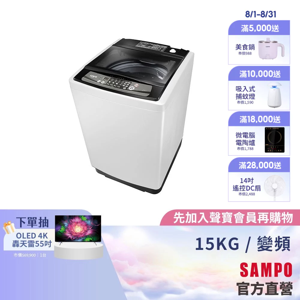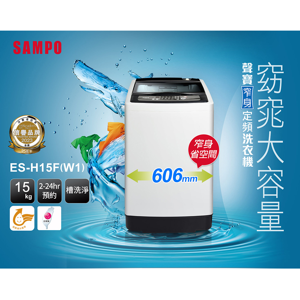 SAMPO聲寶 經典系列15KG定頻洗衣機ES-H15F(W1)典雅白-含基本安裝配送+舊機回收SAMPO聲寶 經典系列15KG定頻洗衣機ES-H15F(W1)典雅白-含基本安裝配送+舊機回收Washing Machines & DryersSAMPO聲寶 官方直營店