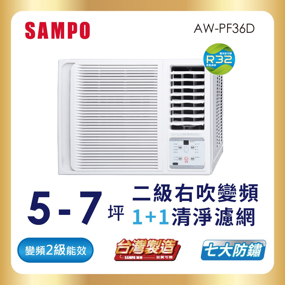 SAMPO聲寶 5-7坪2級R32變頻窗型冷氣(右吹單冷)AW-PF36D-含基本安裝+舊機回收SAMPO聲寶 5-7坪2級R32變頻窗型冷氣(右吹單冷)AW-PF36D-含基本安裝+舊機回收CoolingSAMPO聲寶 官方直營店