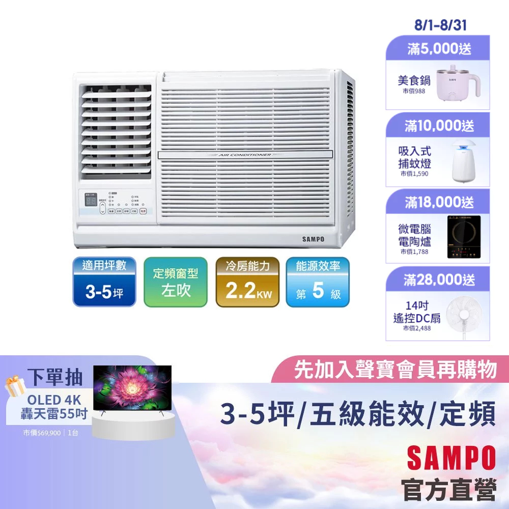 SAMPO聲寶定頻窗型冷專冷氣AW-PC22L-3-5坪左吹-含基本運送安裝+舊機回收SAMPO聲寶定頻窗型冷專冷氣AW-PC22L-3-5坪左吹-含基本運送安裝+舊機回收CoolingSAMPO聲寶 官方直營店