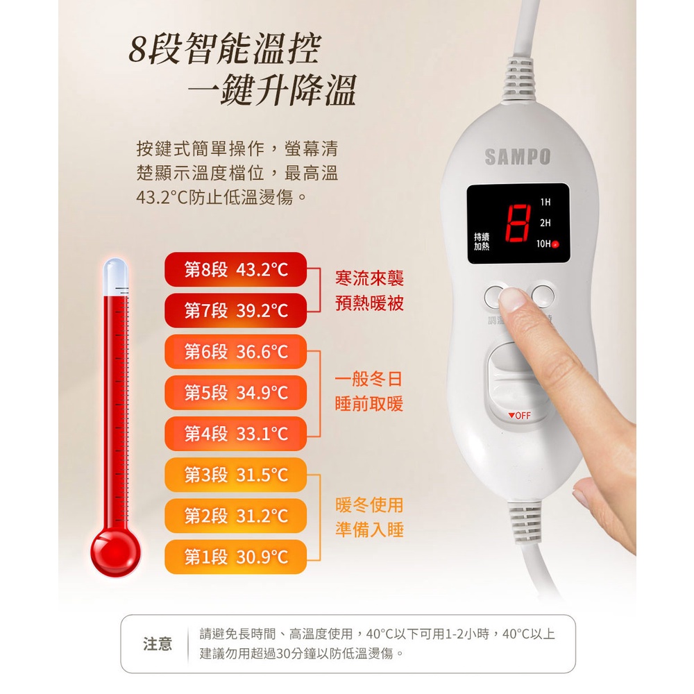 SAMPO聲寶 恆溫定時雙人電熱毯 HY-HA12一般品|福利品HeatersSAMPO聲寶 官方直營店