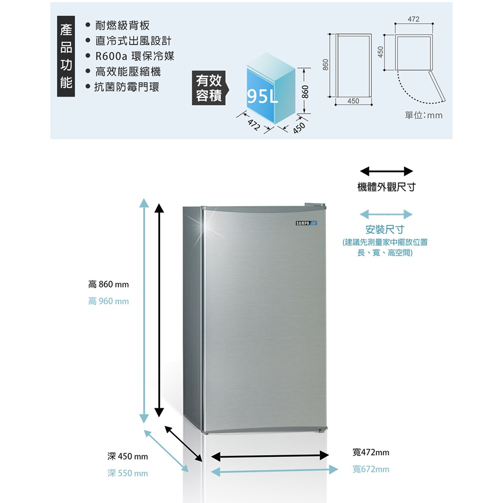 SAMPO聲寶 95L 定頻單門1級冰箱SR-C09-含基本運送+安裝+回收舊機