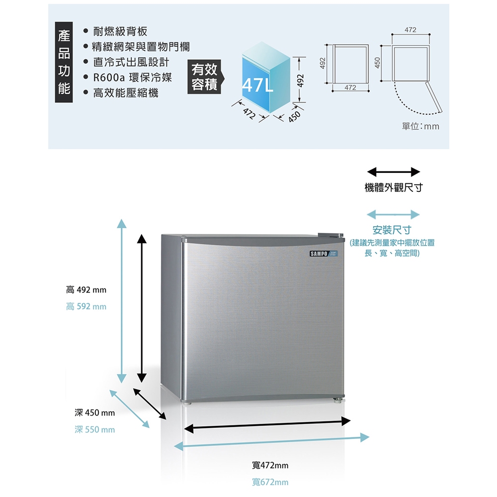 SAMPO聲寶 47L 定頻單門2級冰箱SR-C05-含基本運送+安裝+回收舊機SAMPO聲寶 47L 定頻單門2級冰箱SR-C05-含基本運送+安裝+回收舊機RefrigeratorsSAMPO聲寶 官方直營店
