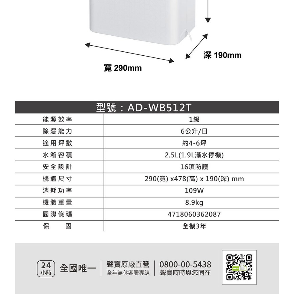 SAMPO聲寶 6L一級能效除濕機 AD-WB512TSAMPO聲寶 6L一級能效除濕機 AD-WB512TAir TreatmentSAMPO聲寶 官方直營店