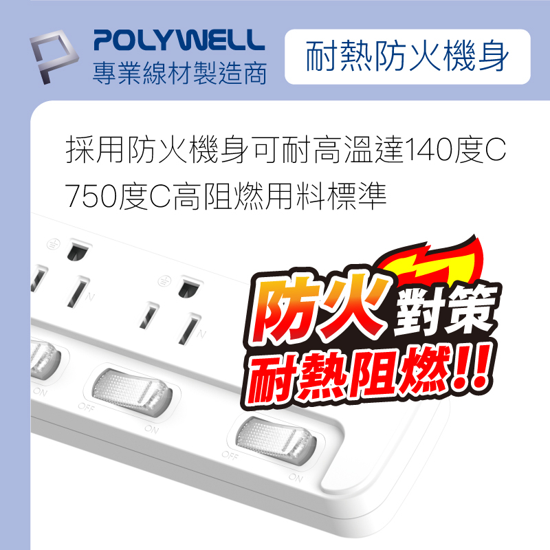 POLYWELL 一體式電源延長線 3插 4插 6插 插座延長線 台灣製造MIT 過載保護 自動斷電 寶利威爾 台灣現貨3切3座 (3開關3插孔),12尺 (360公分)|4切4座 (4開關4插孔),6尺 (180公分)|6切6座 (6開關6插孔),4尺(120公分)|6切6座 (6開關6插孔),6尺 (180公分)|6切6座 (6開關6插孔),12尺 (360公分)|3切3座 (3開關3插孔),4尺(120公分)|3切3座 (3開關3插孔),6尺 (180公分)|3切3座 (3開關3插孔),9尺 (270公分)|4切4座 (4開關4插孔),4尺(120公分)|4切4座 (4開關4插孔),9尺 (270公分)|4切4座 (4開關4插孔),12尺 (360公分)|6切6座 (6開關6插孔),9尺 (270公分)Electric Sockets & Extension CordsPOLYWELL寶利威爾官方旗艦店