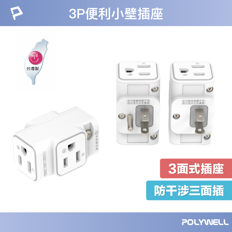 POLYWELL 三面小壁插 3P 3P轉2P 省空間 1座轉3座 插頭不干涉 台灣製造MIT 寶利威爾 台灣現貨3P 三面小壁插|3P轉2P 三面小壁插Electric Sockets & Extension CordsPOLYWELL寶利威爾官方旗艦店