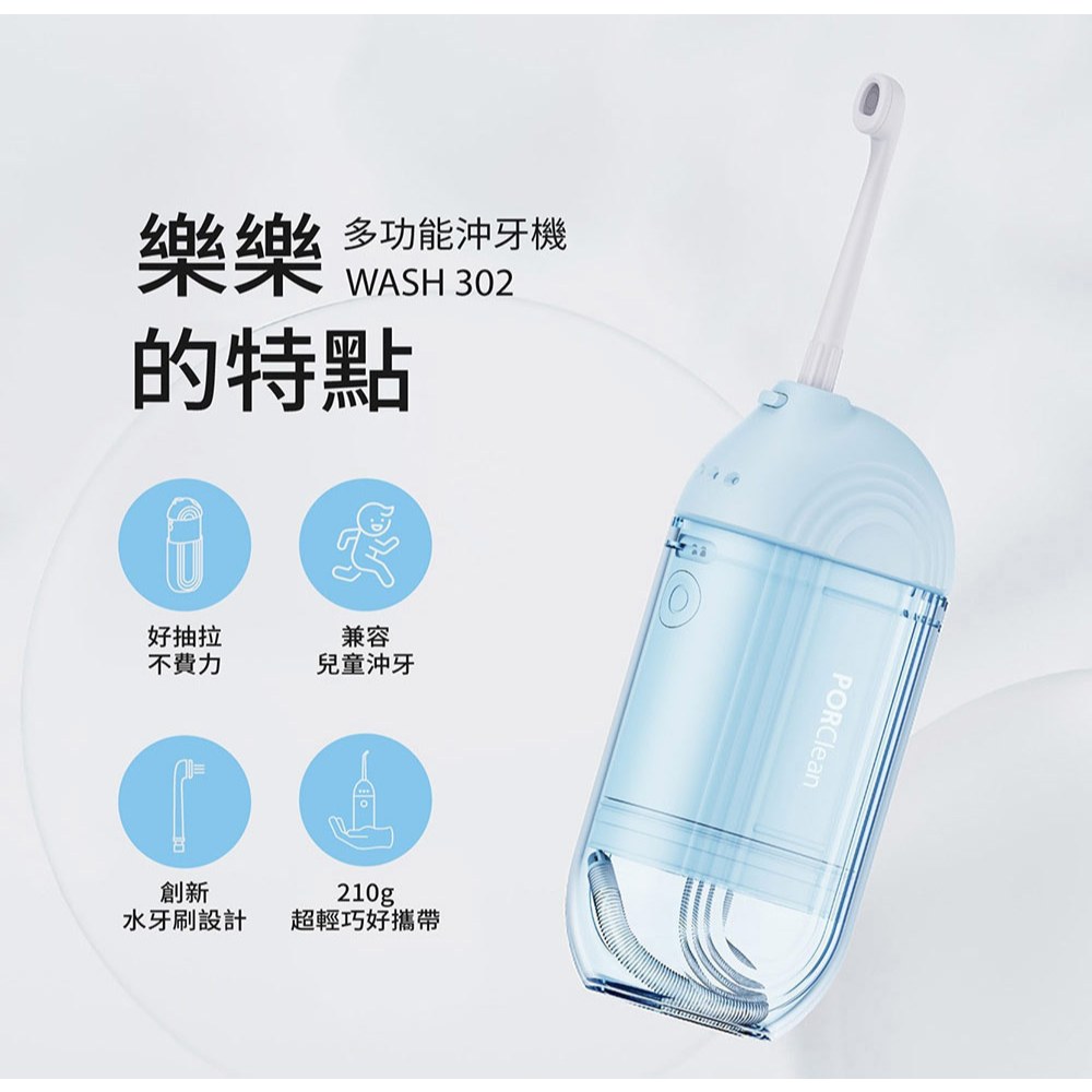 PORClean寶可齡 WASH 302 攜帶型樂樂多功能沖牙機-小粉藍 |品牌旗艦(加碼送專業噴頭)PORClean寶可齡 WASH 302 攜帶型樂樂多功能沖牙機-小粉藍 |品牌旗艦(加碼送專業噴頭)Water FlossersPORClean 寶可齡 授權旗艦店