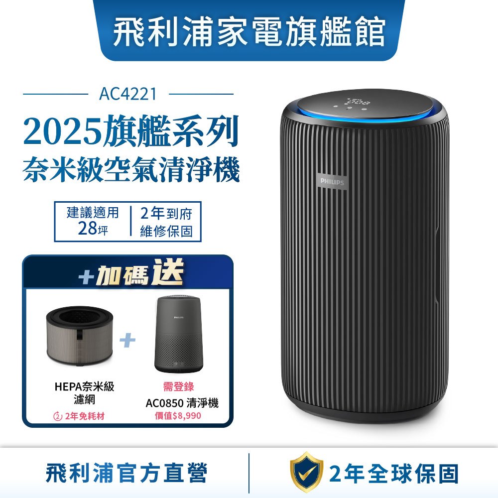 【PHILIPS 飛利浦】奈米級空氣清淨機 適用28坪 AC4221 買大送小【PHILIPS 飛利浦】奈米級空氣清淨機 適用28坪 AC4221 買大送小Air TreatmentPhilips 飛利浦家電旗艦館