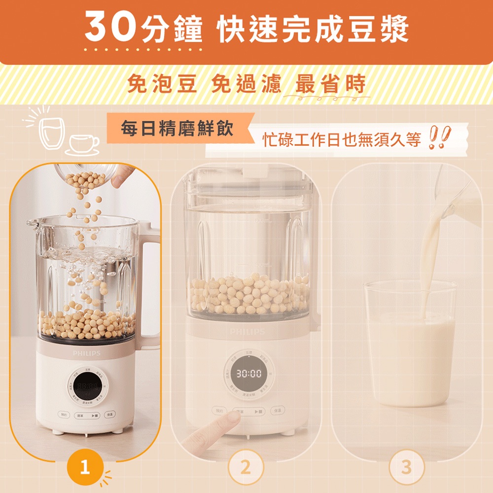 【Philips 飛利浦】破壁營養冷熱豆漿調理機(HR2038/30)
