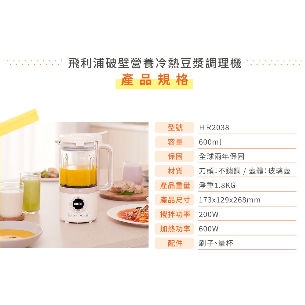 【Philips 飛利浦】破壁營養冷熱豆漿調理機(HR2038/30)【Philips 飛利浦】破壁營養冷熱豆漿調理機(HR2038/30)Juicers, Blenders & Soya Bean MachinesPhilips 飛利浦家電旗艦館