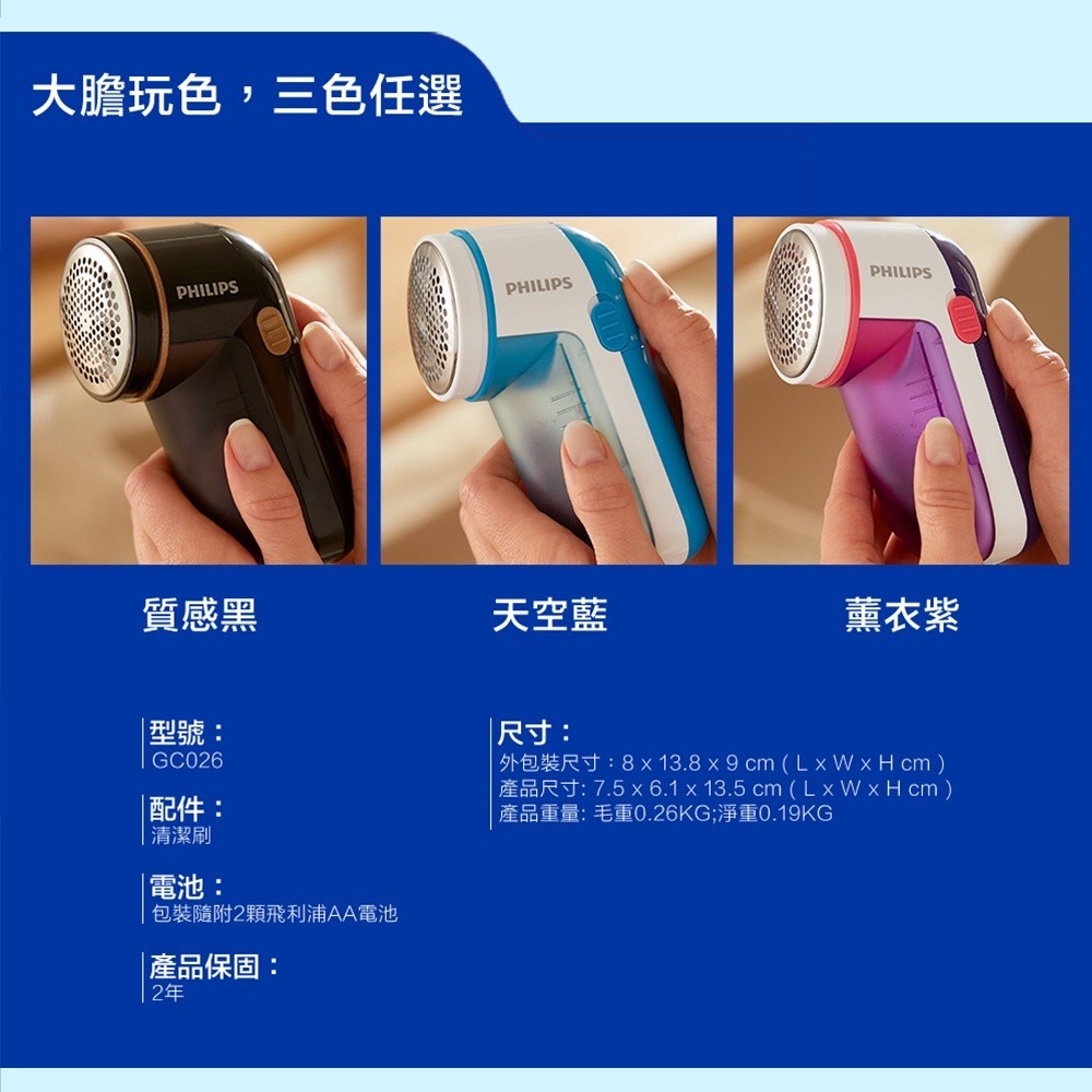 【PHILIPS 飛利浦】 電池式電動除毛球機 GC026天空藍|質感黑OthersPhilips 飛利浦家電旗艦館