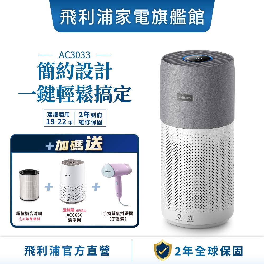 【PHILIPS 飛利浦】奈米級空氣清淨機 適用22坪 AC3033(買大送小)+贈手持掛燙機(丁香紫)【PHILIPS 飛利浦】奈米級空氣清淨機 適用22坪 AC3033(買大送小)+贈手持掛燙機(丁香紫)Air TreatmentPhilips 飛利浦家電旗艦館