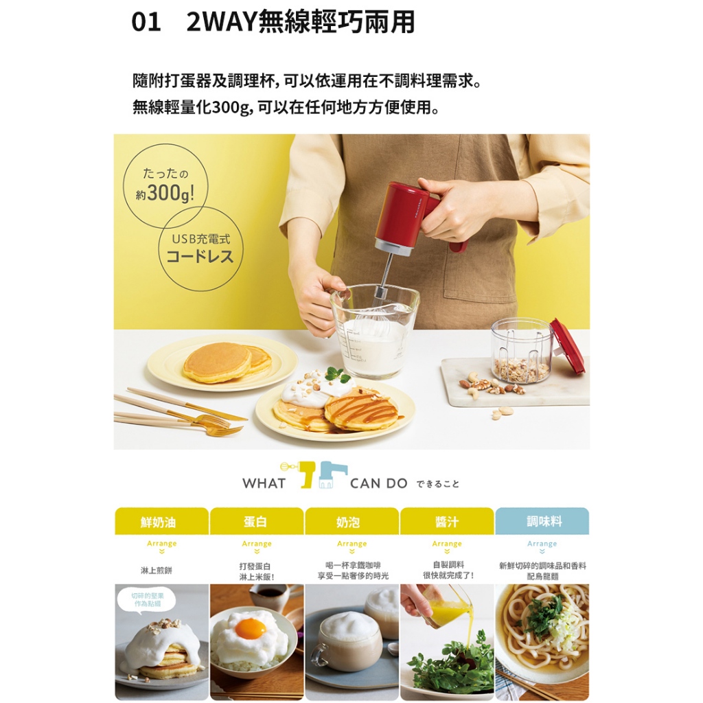 日本recolte 手持攪拌調理機 Cordless RCW-1 打蛋 打發 切碎 切蒜 攪拌 充電式 官方旗艦店經典紅|奶油白Food Processors & Meat Grindersrecolte 麗克特 官方旗艦館