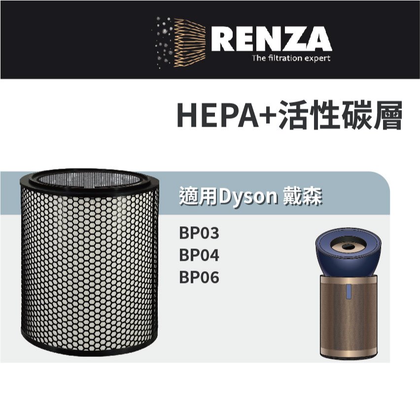適用 Dyson 戴森 BP03 BP04 BP06 強效極靜甲醛偵測空氣清淨機 HEPA+活性碳 濾網 濾芯 濾心HEPA高效濾網 x 1片|活性碳濾網 x 1片Air TreatmentRenza Filtration 濾網專家