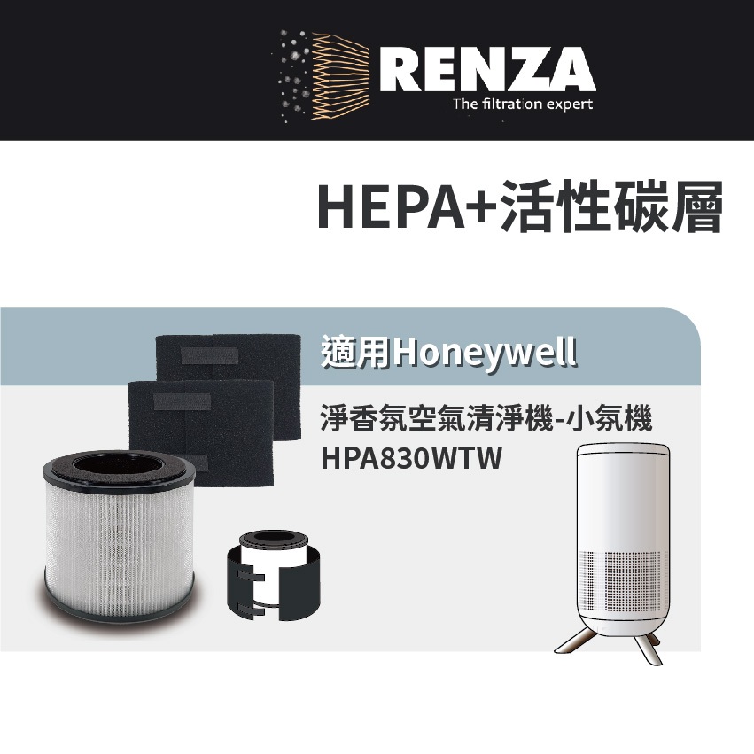 適用 Honeywell HPA-830WTW 小氛機 空氣清淨機 HRFJ830 HEPA活性碳二合一濾網 濾芯 濾心前置活性碳濾網 *2片|HPA830WTW濾網 (超商最多一件)Air TreatmentRenza Filtration 濾網專家