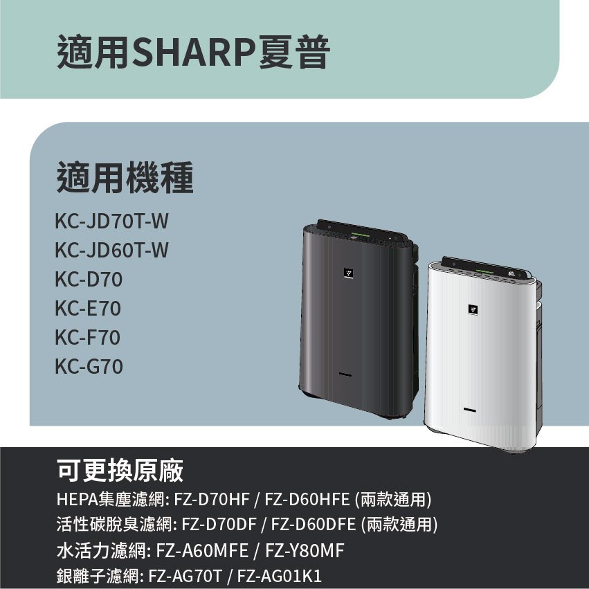 適用Sharp夏普KC-JD70T-W KC-JD60T-W KC-D70 KC-E70 KC-F70 KC-G70濾網1片抗敏HEPA濾網|1片蜂巢活性碳濾網(除臭除甲醛)|1片水活力濾網|1支銀離子Air TreatmentRenza Filtration 濾網專家