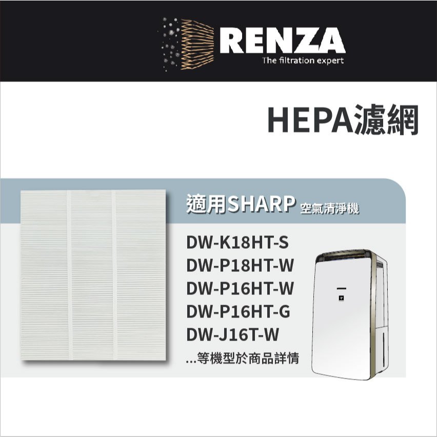 適用Sharp 夏普 DW-K18HT-S P18HT-W P16HT-W P16HT-G 空氣清淨除濕機 HEPA濾網1片 全新抗敏HEPA濾網Air TreatmentRenza Filtration 濾網專家