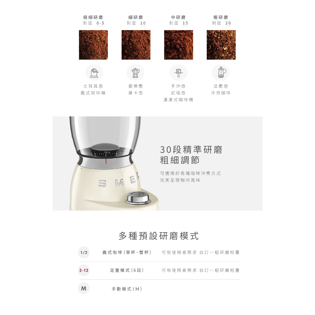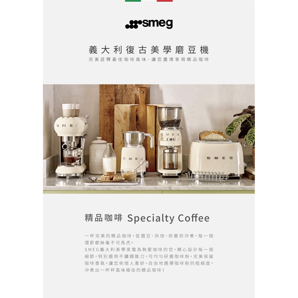 【SMEG】義大利復古美學 定量磨豆機-奶油色【SMEG】義大利復古美學 定量磨豆機-奶油色Coffee Machines & AccessoriesSMEG 台灣官方旗艦店