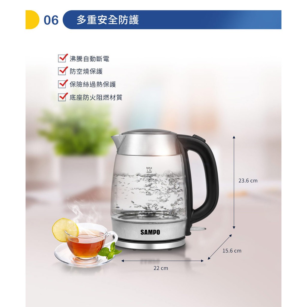 SAMPO聲寶 1.7L大容量玻璃快煮壺 KP-CB17GSAMPO聲寶 1.7L大容量玻璃快煮壺 KP-CB17GKettlesSAMPO聲寶 官方直營店