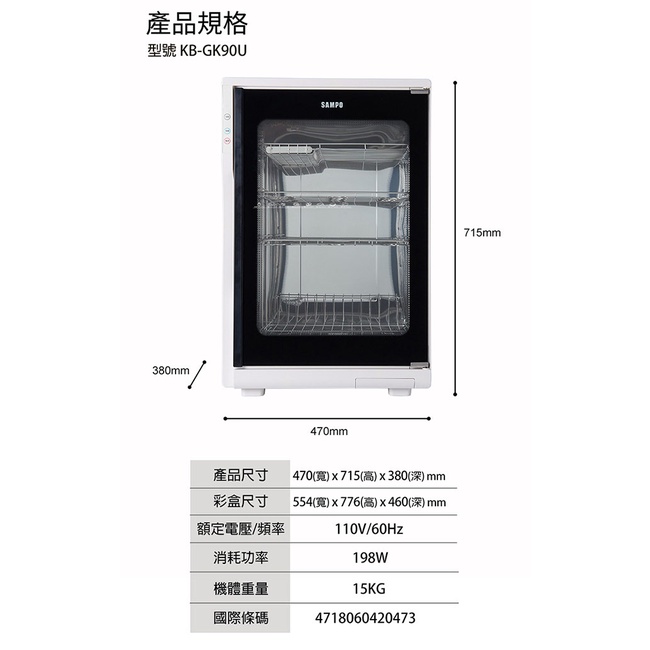 SAMPO聲寶 90公升四層紫外線烘碗機 KB-GK90USAMPO聲寶 90公升四層紫外線烘碗機 KB-GK90UOthersSAMPO聲寶 官方直營店