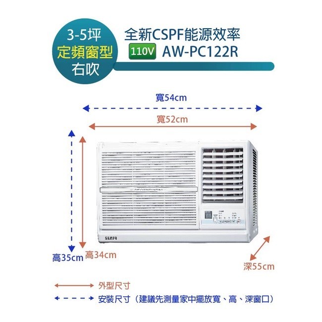 SAMPO聲寶定頻窗型冷氣110V(AW-PC122)-含基本運送安裝+舊機回收110V右吹型|110V左吹型CoolingSAMPO聲寶 官方直營店