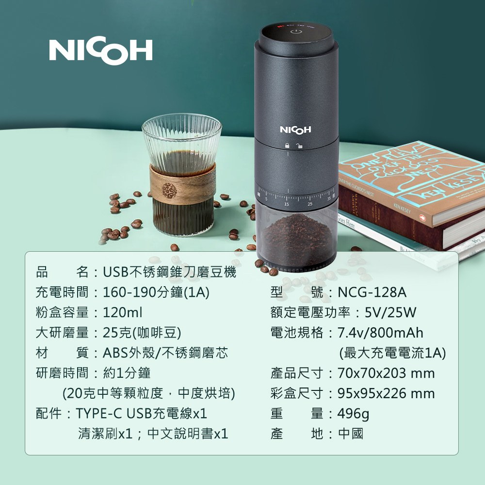 日本NICOH-USB不锈鋼錐刀磨豆機送機能衣NCG-128A一入送一件機能衣|兩入送一件機能衣Coffee Machines & AccessoriesRUYUHOUSE