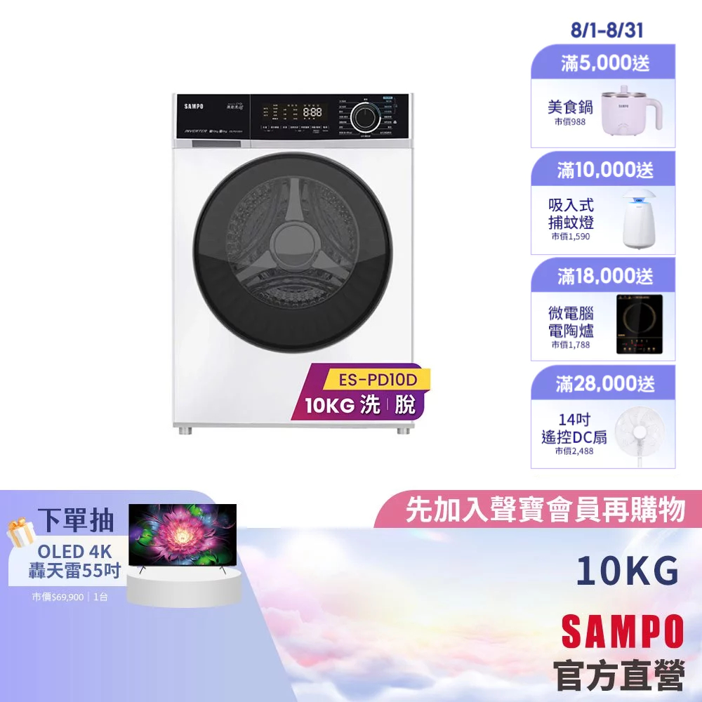SAMPO聲寶10Kg變頻洗脫蒸滾筒洗衣機ES-PD10D(無烘乾)-含基本安裝+舊機回收SAMPO聲寶10Kg變頻洗脫蒸滾筒洗衣機ES-PD10D(無烘乾)-含基本安裝+舊機回收Washing Machines & DryersSAMPO聲寶 官方直營店