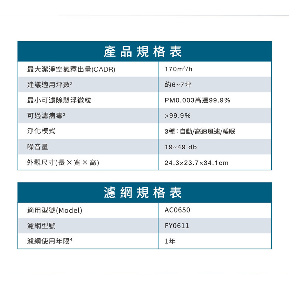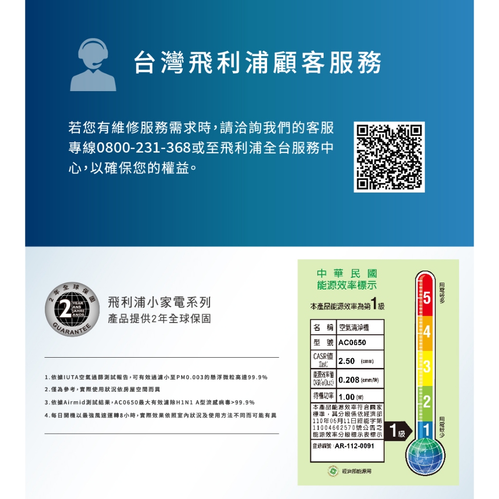 【PHILIPS 飛利浦】奈米級空氣清淨機 適用7坪 AC0650單主機Air TreatmentPhilips 飛利浦家電旗艦館