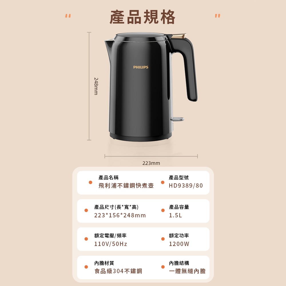 【PHILIPS 飛利浦】1.5L 不鏽鋼快煮壺(HD9389/80)【PHILIPS 飛利浦】1.5L 不鏽鋼快煮壺(HD9389/80)KettlesPhilips 飛利浦家電旗艦館