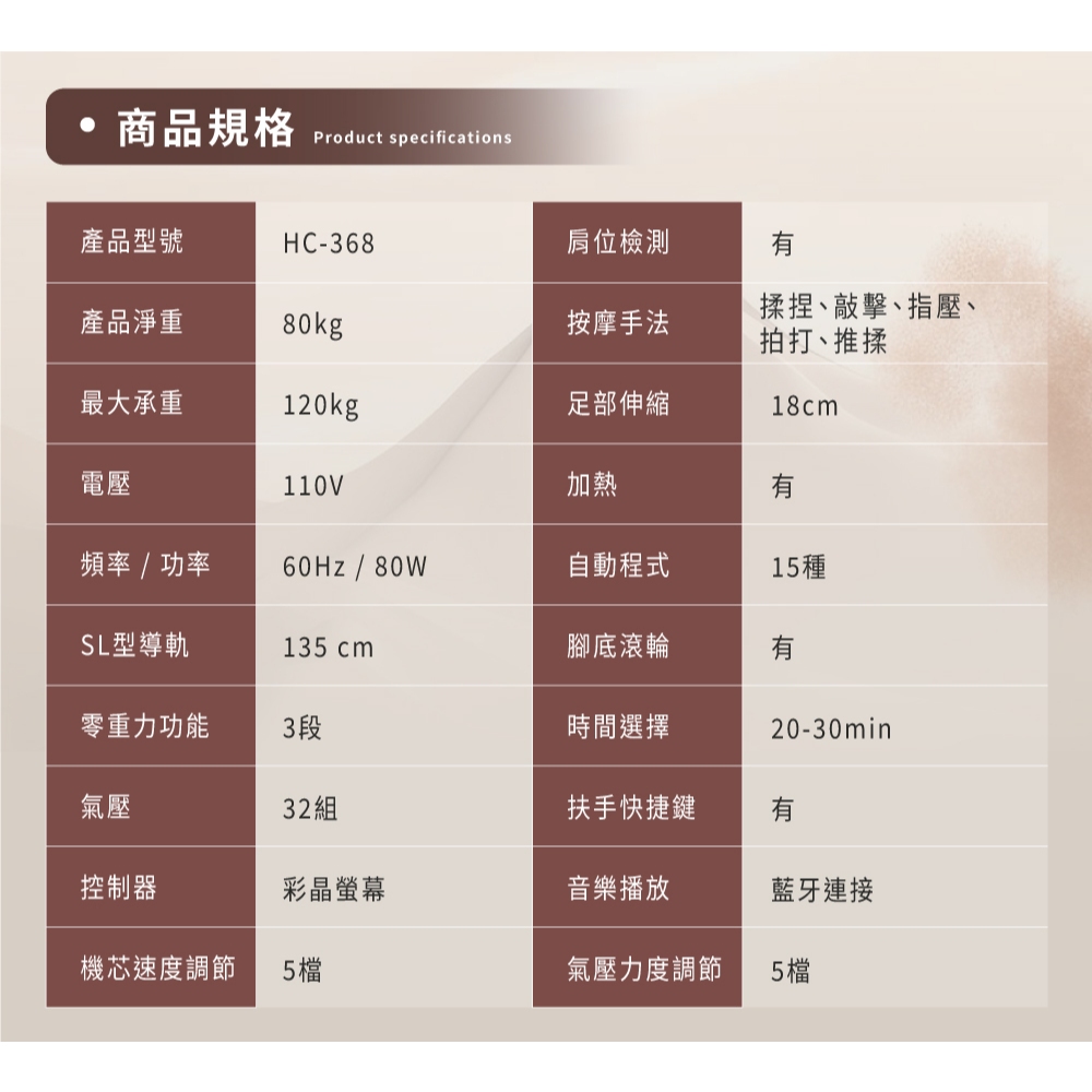 HEALTHPIT日式舒適生活 御手之座按摩椅 HC-368 (135公分超長按摩軌道)