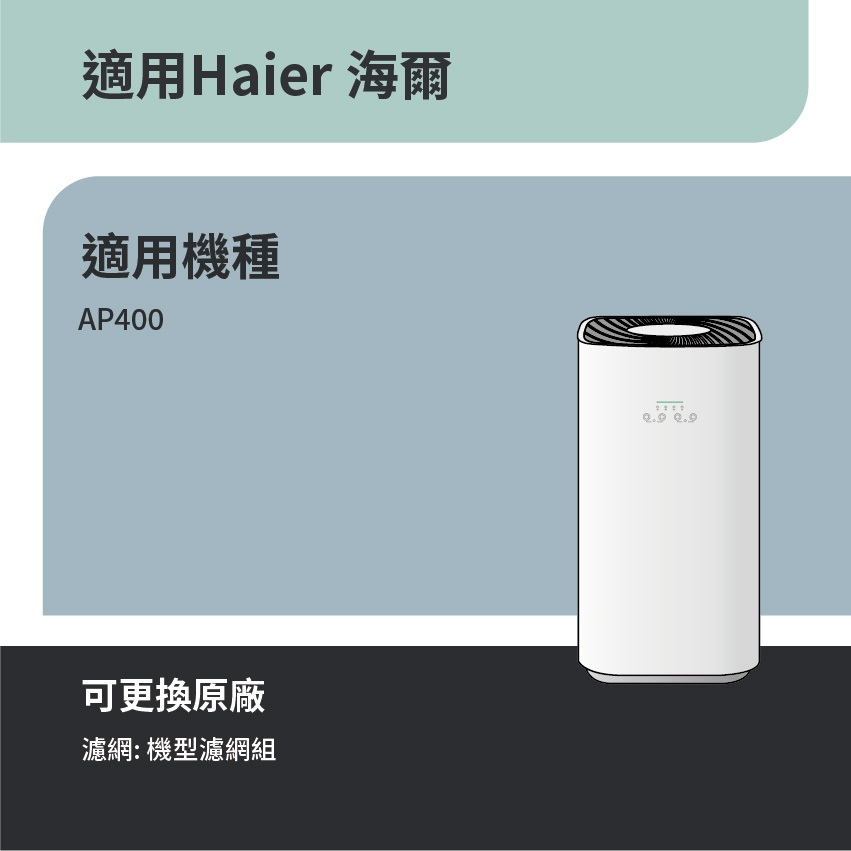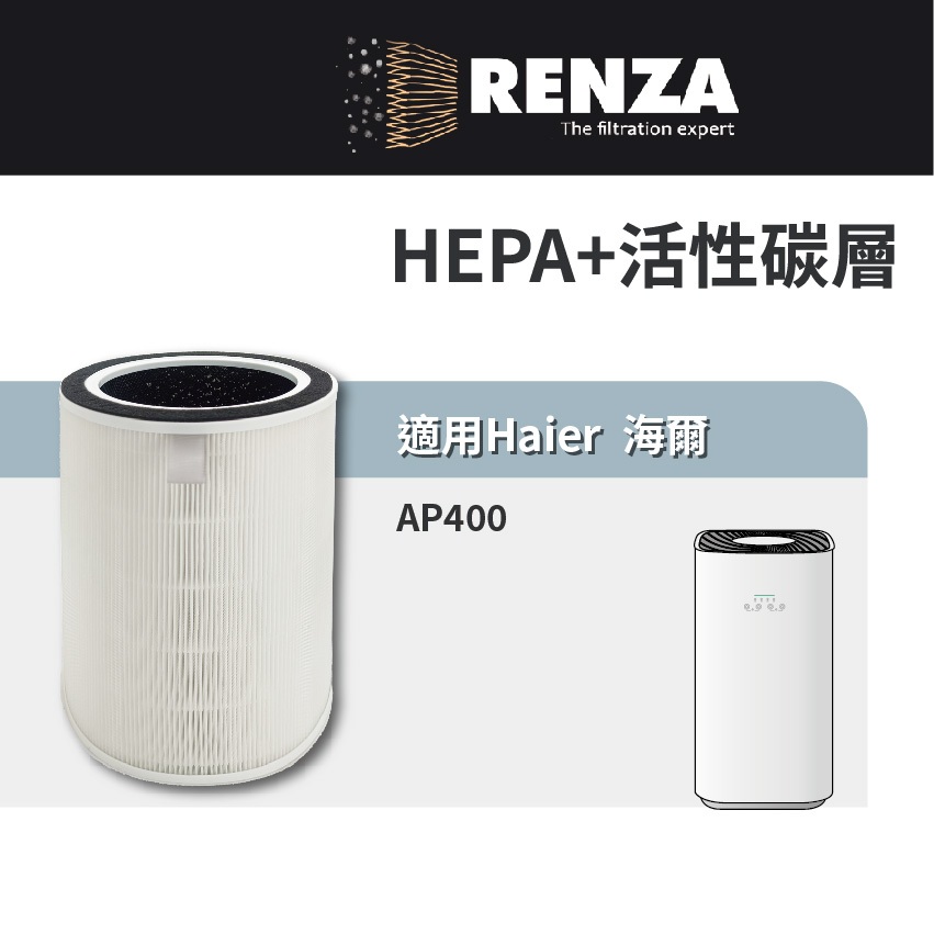 適用 Haier 海爾 AP400 除霾抗菌空氣清淨機 適用6-15坪 HEPA+活性碳 濾網 濾芯 濾心2合1濾網 1個 (超商最多一件)Air TreatmentRenza Filtration 濾網專家