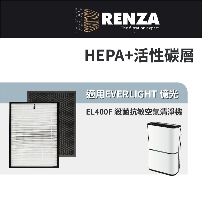 適用EVERLIGHT 億光 EL400F 殺菌抗敏空氣清淨機 高效HEPA+活性碳濾網 濾心 濾芯1片蜂巢活性碳濾網(除臭除甲醛)|1片抗敏HEPA濾網Air TreatmentRenza Filtration 濾網專家