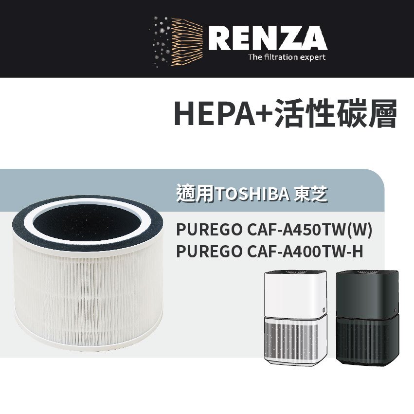 適用TOSHIBA 東芝 Purego CAF-A450TW CAF-A400TW 抗敏空氣清淨機 HEPA活性碳濾網芯濾網(超商最多2件)Air TreatmentRenza Filtration 濾網專家