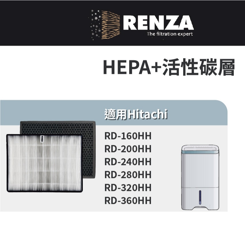 適用Hitachi日立RD-200HH 240HH 280HH 320HH 360HH 160HH清淨除濕抗菌活性碳濾網福利品 1片抗敏HEPA+1片蜂巢活性碳|1片抗敏HEPA濾網+1片蜂巢活性碳濾網|1片抗敏HEPA濾網|1片蜂巢活性碳濾網Air TreatmentRenza Filtration 濾網專家