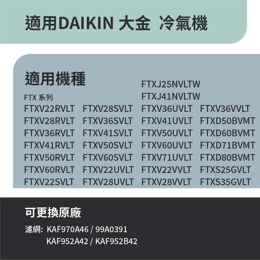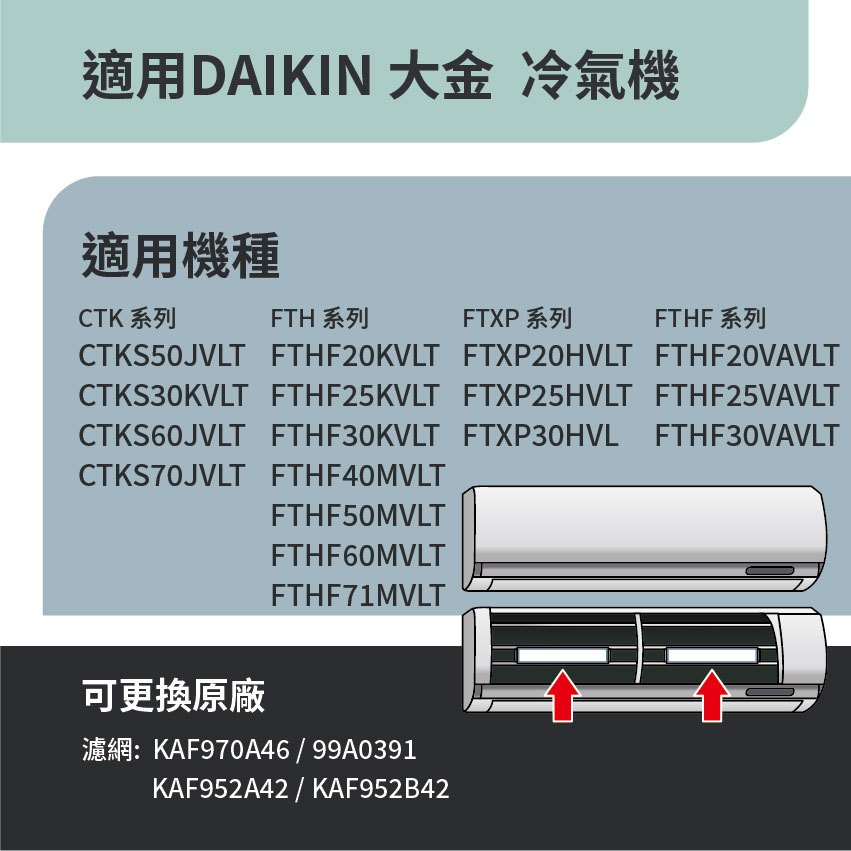 適用 Daikin 大金 CTK FTH FTX FTK FTXP FTXM FTHF 系列 分離式冷氣 HEPA濾網適用 Daikin 大金 CTK FTH FTX FTK FTXP FTXM FTHF 系列 分離式冷氣 HEPA濾網Air TreatmentRenza Filtration 濾網專家