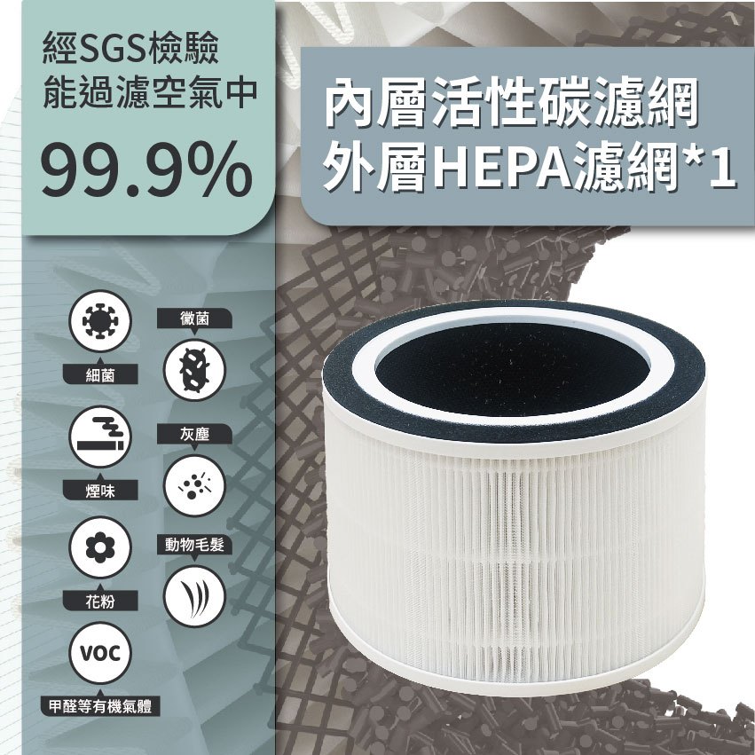 適用EVERLIGHT 億光 EL400F 殺菌抗敏空氣清淨機 高效HEPA+活性碳濾網 濾心 濾芯