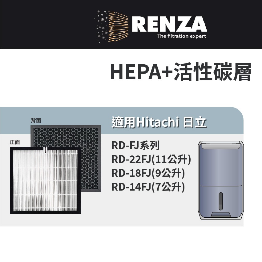 適用Hitachi 日立 RD-22FJ RD-18FJ RD-14FJ 清淨型除濕機 HEPA 活性碳濾網 濾芯純HEPA|HEPA+活性碳Air TreatmentRenza Filtration 濾網專家