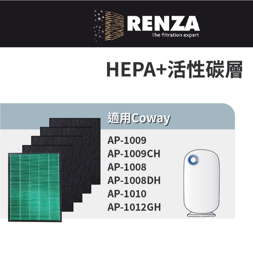 適用Coway AP-1009CH 1009 1008 1008DH 1010 1012GH HEPA活性碳 濾網 濾芯1片抗菌HEPA濾網+4片脫臭活性碳濾網|1片抗菌HEPA濾網|4片脫臭活性碳濾網Air TreatmentRenza Filtration 濾網專家