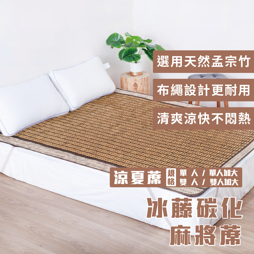 冰藤碳化麻將涼夏蓆 (單人/單人加大/雙人/雙人加大)/孟宗竹/適合軟硬床/涼感降溫/好收納/工廠出貨/開發票/宅配單人3×6.2尺|單人加大3.5×6.2尺|雙人5×6.2尺|雙人加大6×6.2尺Cooling MatsRohouse 樂活居