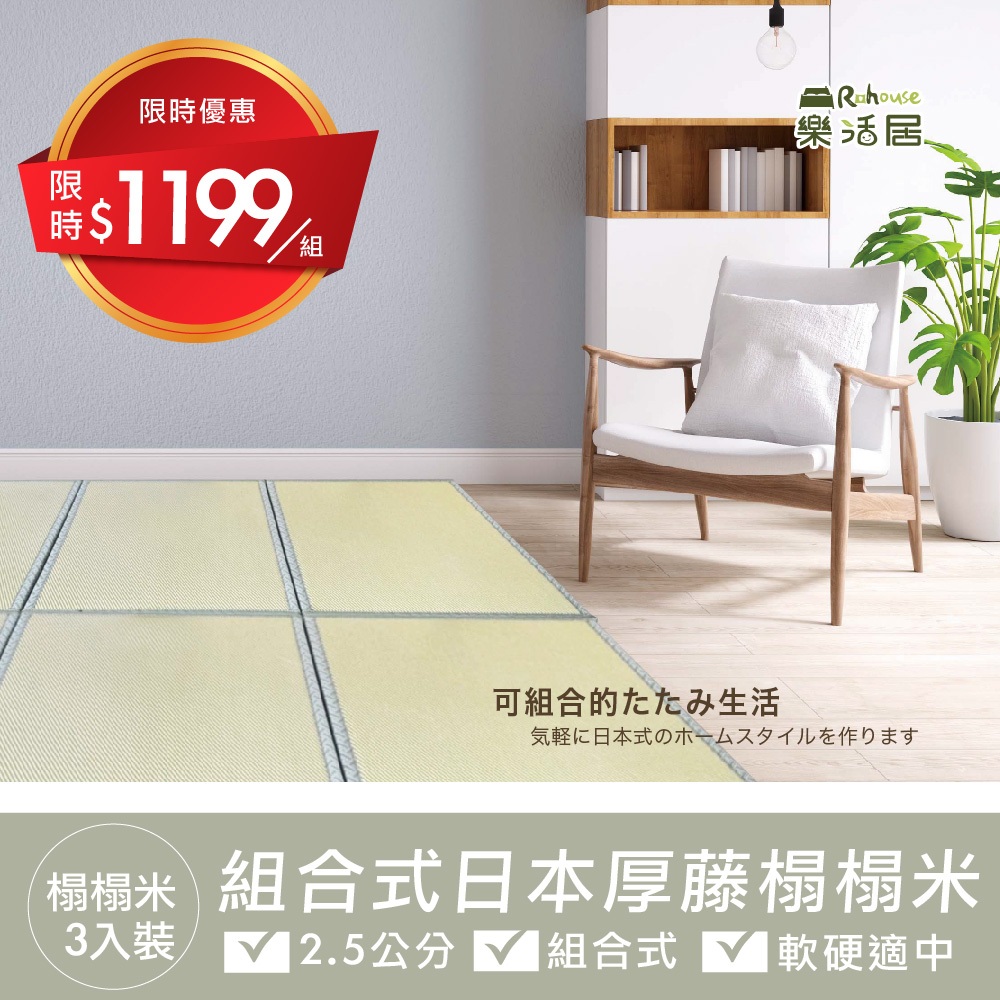 【限時優惠】日本厚藤蓆組合式榻榻米-3入裝 /地墊 /涼蓆 /現貨/工廠直營/ 可組裝/ 台灣製造 /四季皆可用/宅配一組(3入)Cooling MatsRohouse 樂活居
