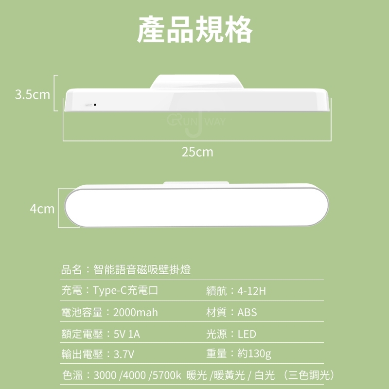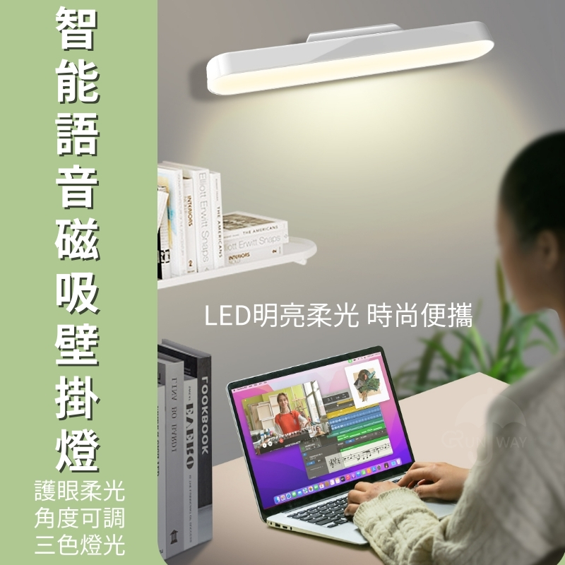 智能語音燈 聲控 磁吸壁掛燈 LED 磁吸式 三色燈 補光燈 化妝燈 壁燈 磁吸燈 小夜燈 宿舍燈 充電式 燈條 停電智能語音磁吸壁掛燈,充電款-白Runway 居家生活 戶外嚴選 隱形內衣 胸貼 胸墊 泳鏡 戲水周邊