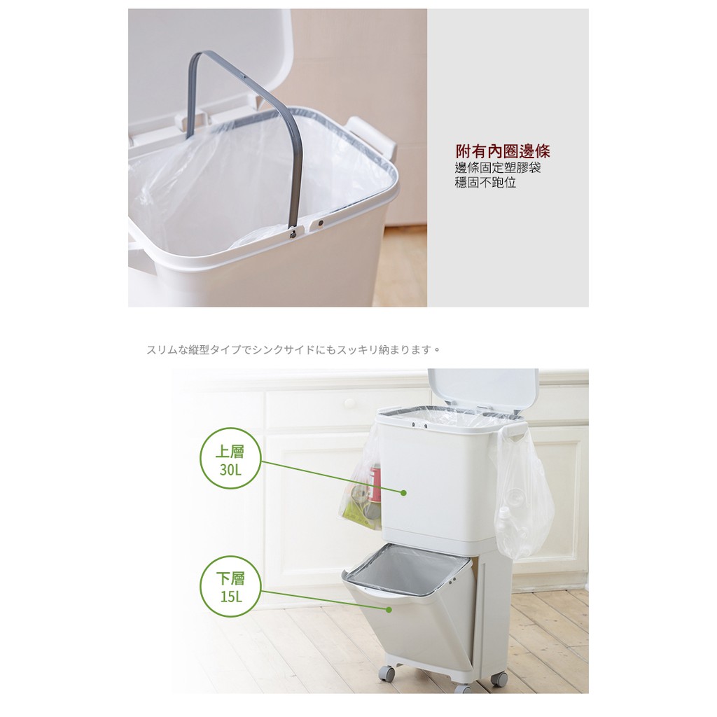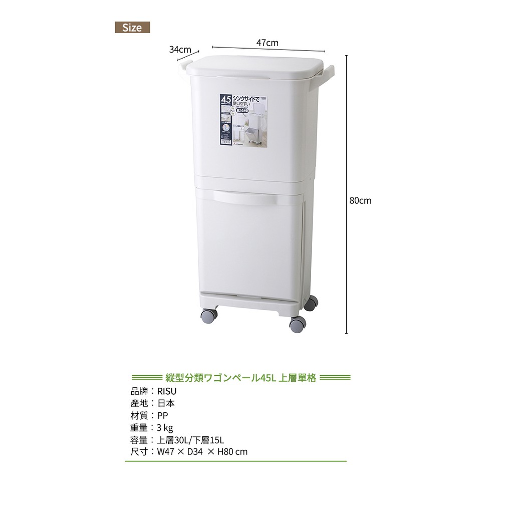 【日本RISU】日本製雙層移動式分類垃圾桶(上層單格)-45L【日本RISU】日本製雙層移動式分類垃圾桶(上層單格)-45LTrash & Recycling Binsnicegoods 生活好東西