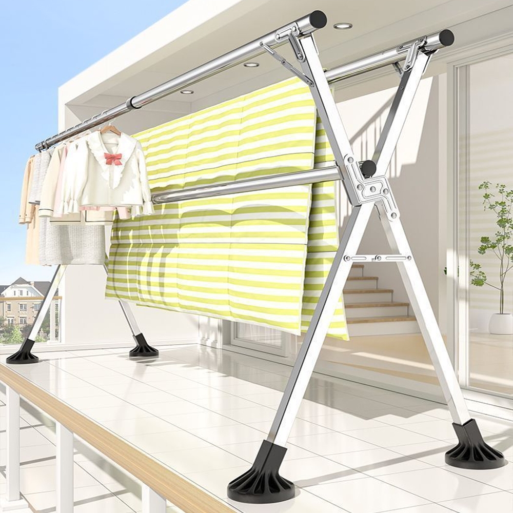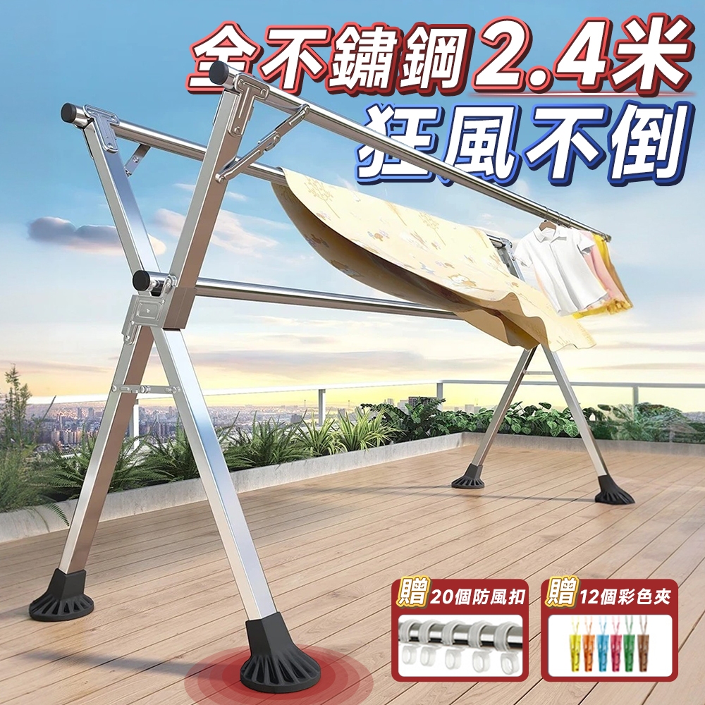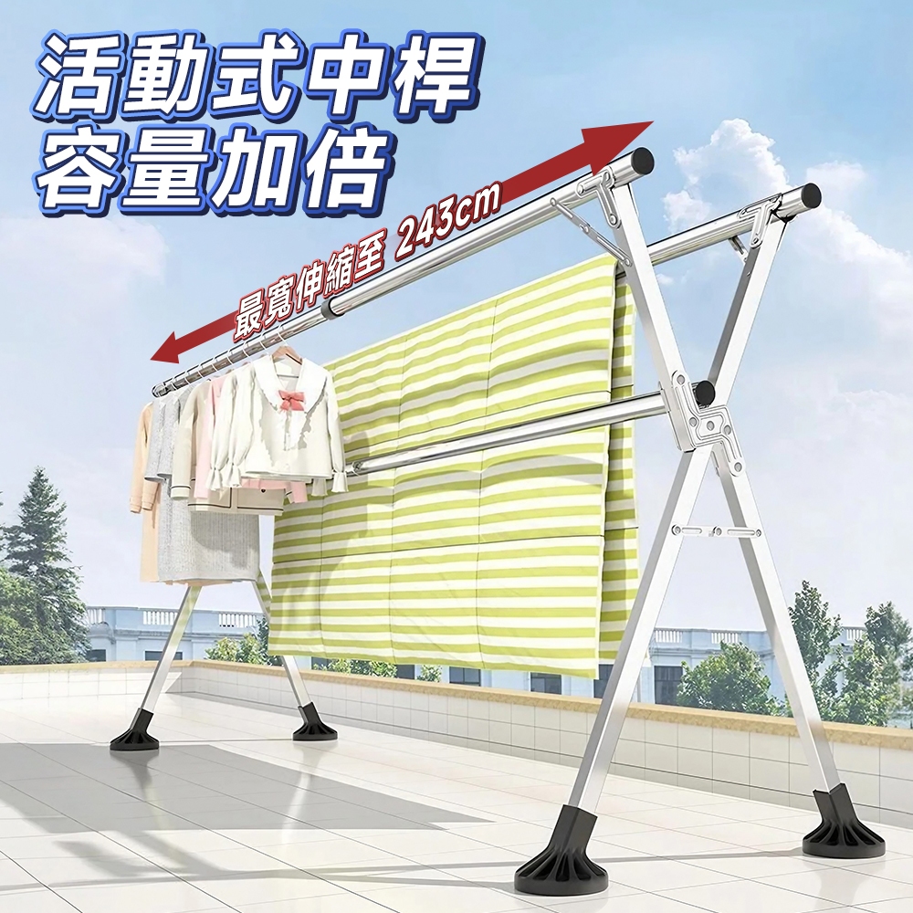 STYLE格調 | 全不鏽鋼2.4米伸縮摺疊曬衣架【HA-030-G】不銹鋼X型 曬被架 曬鞋架晾曬架 伸縮晾衣架 防風經典款–管徑22mm|升級款–管徑25mmClotheslines & Drying RacksSTYLE格調居家美學