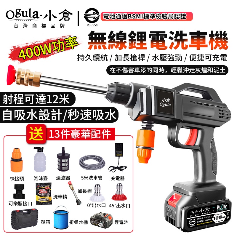 【Ogula小倉】無線洗車機 高壓洗車機 高壓水泵洗車機 清洗機 電動洗車機 洗車機 高壓清洗機 鋰電洗車機 自吸兩用無線洗車機【全套配件】+認證五節一電|無線洗車機【全套配件】+認證十節一電|BSMI:R3E558認證電池-五節電芯|BSMI:R3E558認證電池-十節電芯|無線洗車機【全套配件】無電池-無充電器|無線洗車機【全套配件】+認證五節兩電|無線洗車機【全套配件】+認證十節兩電ToolsOgula小倉【官方旗艦店】
