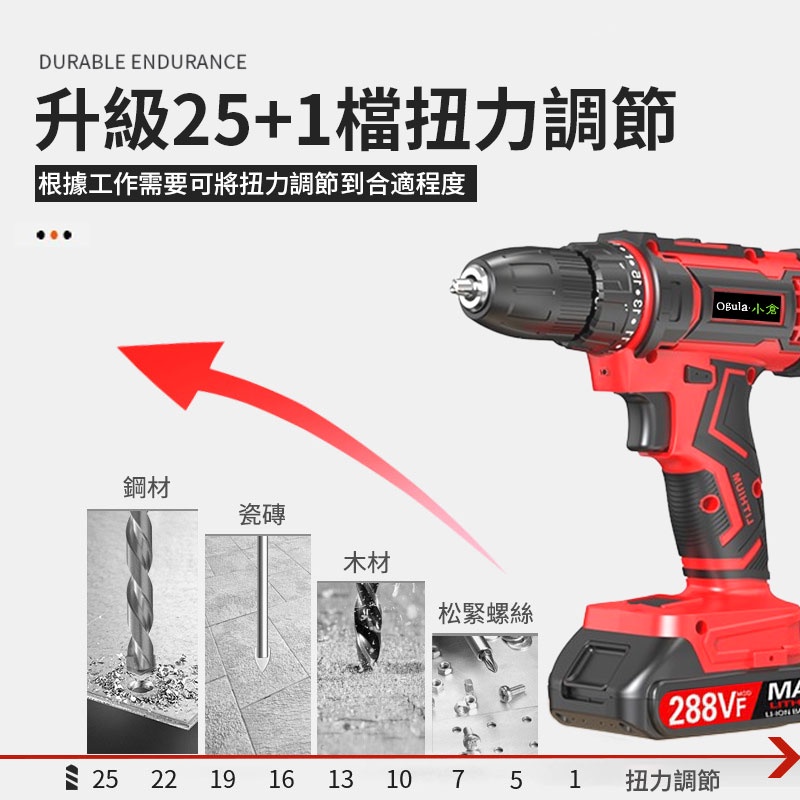 【Ogula小倉】電鑽 288Vf衝擊鑽【贈126件工具套裝】衝擊扳手 雙速正反轉【10倍蝦幣回饋】288Vf衝擊電鑽【贈126件工具套裝】|68VF雙速工業款【一電一充】配件+塑箱ToolsOgula小倉【官方旗艦店】