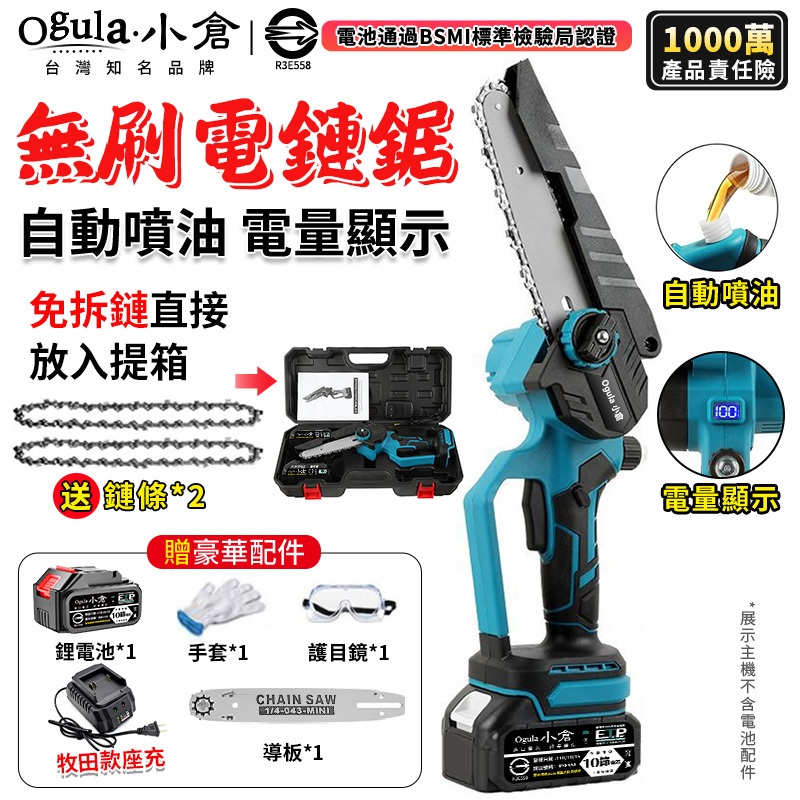 【Ogula小倉】鏈鋸機 電鏈鋸 電動鏈鋸 無刷鏈鋸 免組裝自動噴油 帶電量顯示 電動鏈鋸機 18V數顯鏈鋸無刷免保養6寸鏈鋸【五節一電+2條鏈條】|無刷免保養6寸鏈鋸【五節兩電+2條鏈條】|無刷免保養6寸鏈鋸【十節一電+2條鏈條】|無刷免保養6寸鏈鋸【十節兩電+2條鏈條】|BSMI:R3E558認證電池-十節電芯|BSMI:R3E558認證電池十五節電芯|無刷免保養6寸鏈鋸【裸機+2條鏈條】|無刷免保養8寸鏈鋸【裸機+2條鏈條】|無刷免保養8寸鏈鋸【五節一電+2條鏈條】|無刷免保養8寸鏈鋸【五節兩電+2條鏈條】|無刷免保養8寸鏈鋸【十節一電+2條鏈條】|無刷免保養8寸鏈鋸【十節兩電+2條鏈條】ToolsOgula小倉【官方旗艦店】
